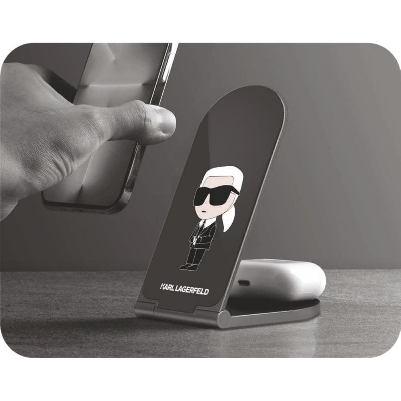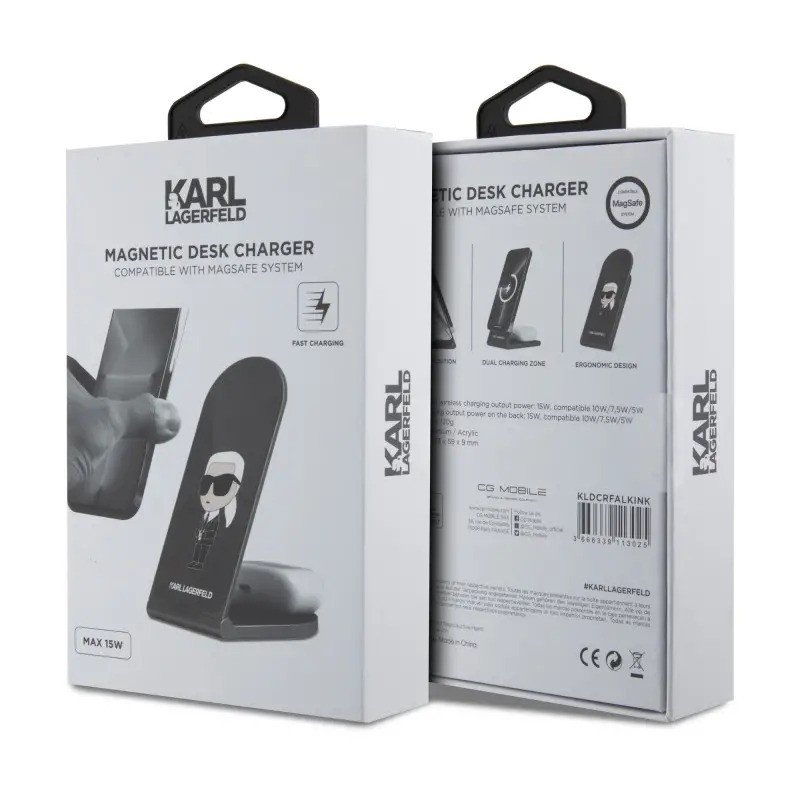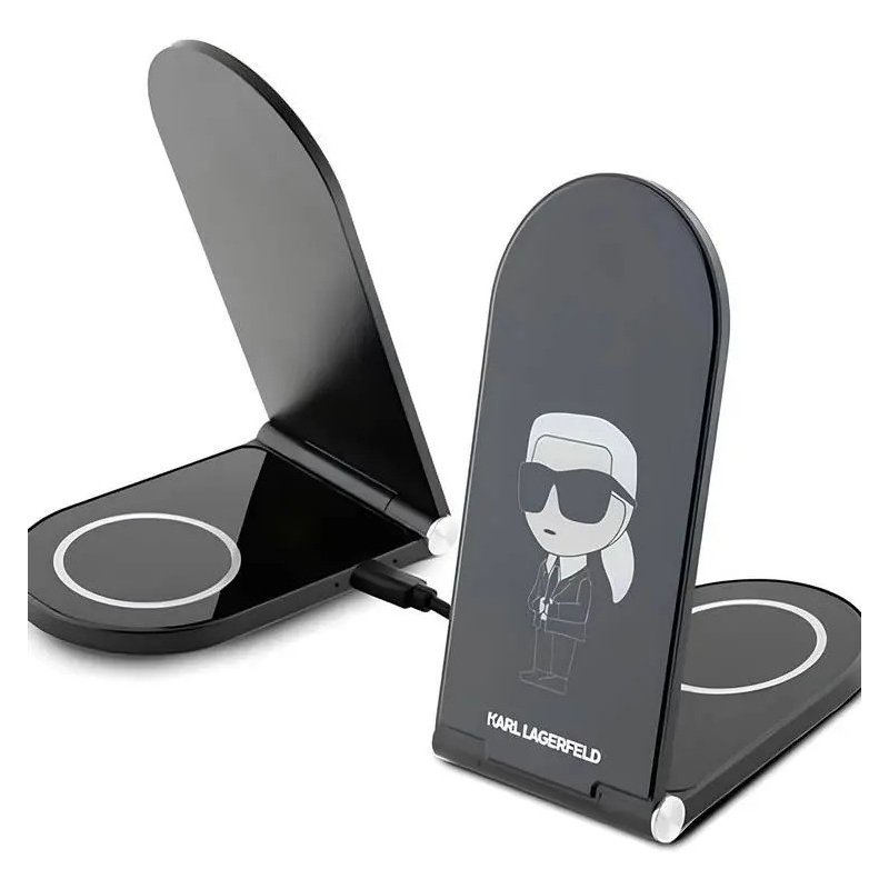- شارژر بی سیم از برند کارل در رنگ مشکی با توان ۱۵ وات