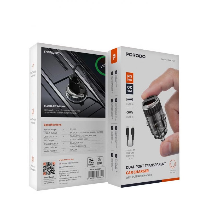 شارژر ماشین Porodo دو پورت شفاف Porodo Dual Port Transparent Car Charger