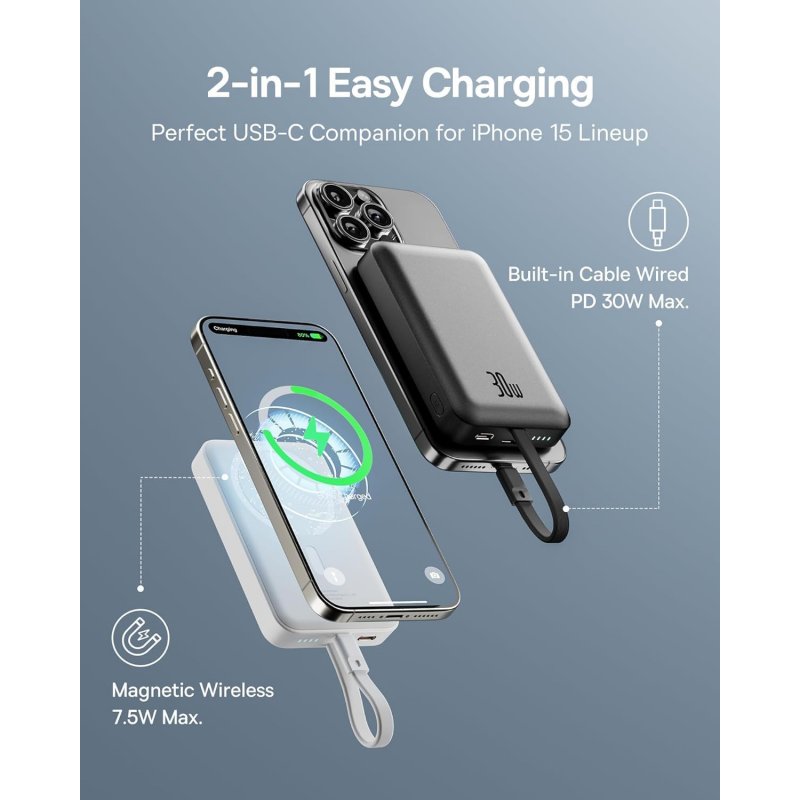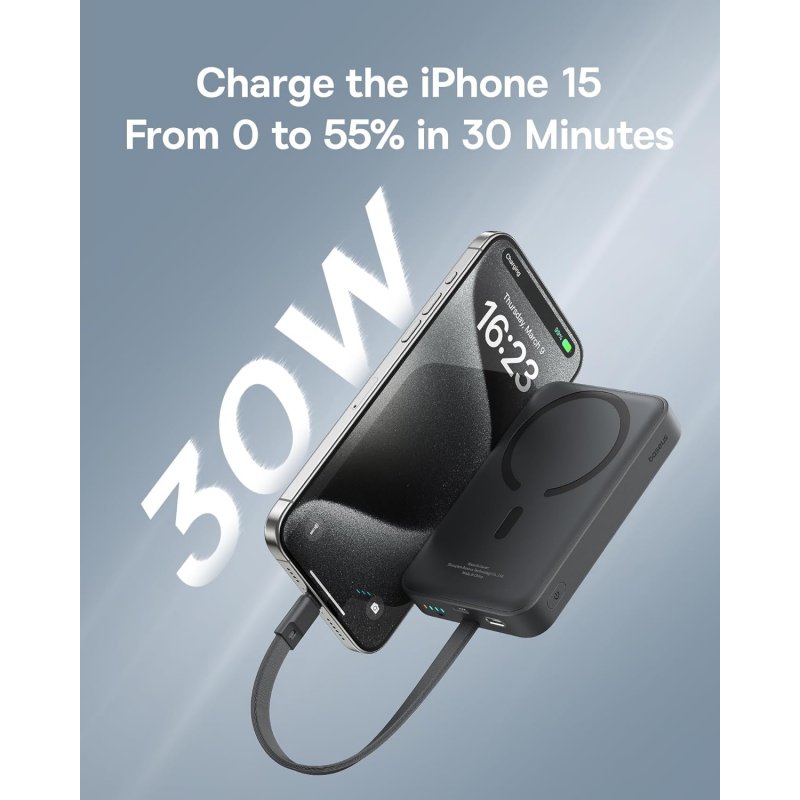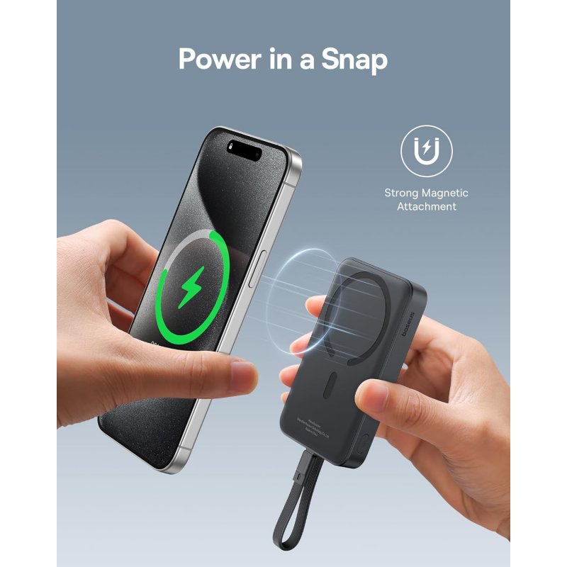 پاوربانک مگ سیف به همراه کابل شارژ تایپ سی ۱۰۰۰۰ میلی آمپر برند بیسوس ۳۰ وات