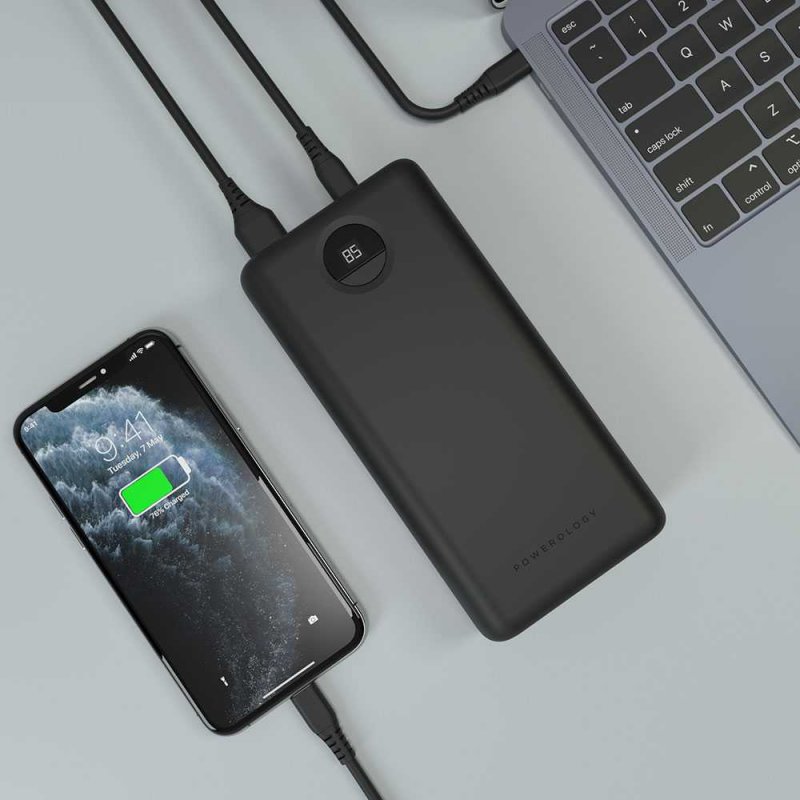 پاوربانک ۳۰۰۰۰ میلی آمپر ۴۵ وات برند powerology با قابلیت فناوری PD powerology PowerBank 30000 mAh Model PD Quick Charge